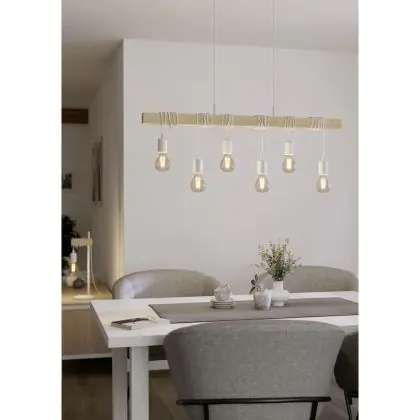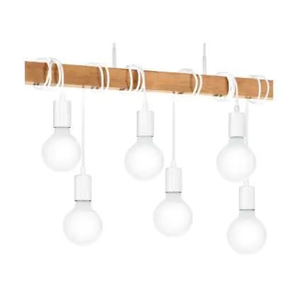 Eglo Pendelleuchte Townshend Stahl Weiß Holz | IP20 - Geeignet für 6x E27