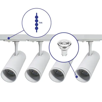 Le Bright Choice Ensemble complet Rail Monophasé Rail 1 Mètre Blanc | incl. 4x Spot + GU10 2700K 3W Dimmable + Embout, Connecteur d’Alimentation est luminaire d’accentuation. Plus précisément, il s’agit d’un spot LED sur rail triphasé. Ce spot Bright Choice utilise la technologie LED Intégré lui permettant d’avoir une durée de vie beaucoup plus longue (15000 heures) qu’un luminaire classique. De plus, avec la technologie LED vous réaliserez des économies d’énergie importantes et donc des économies de coûts. Ce spot LED dispose d’un excellent indice de rendu des couleurs comprit entre 80-89 Ra et propose une couleur de lumière de . Ce type d’éclairage est apprécié dans les restaurants, boutiques et les autres différents commerces.