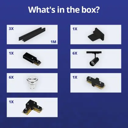 | Nom du fabricant | Complete L shaped 1-Phase Track Set Black incl. 6x Spot fixture + GU10 2700K 3W Dim – 1 x 2 meter i | |