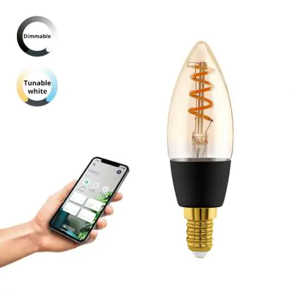 Description Eglo Connect.Z Smart LED Bougie E14 Filament Ambre 4.9W 320lm - 827-865 Accordable Blanc | Dimmable - Remplacement 25W