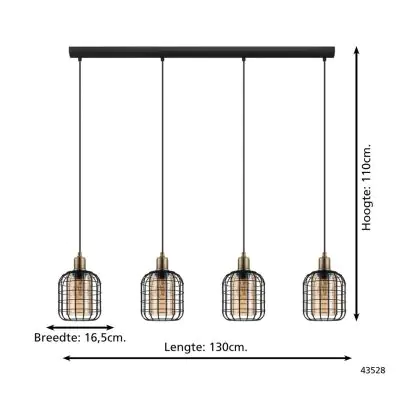 Eglo Suspension Luminaire Chisle Échantillon Noir | IP20 - Convient pour 4x E27