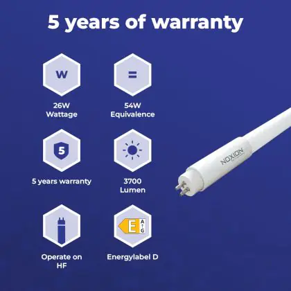 Ce tube LED LEDtube T5 Extreme Electronic (HF) High Output 26W 3700lm - 830 Blanc Chaud | 115cm - Remplacement 54W est l’un des produits les plus éconergétiques en remplacement des tubes T5 classiques. Ce tube LED est produit par Budgetlight, vous êtes donc assuré de sa qualité. Avec une puissance de seulement 26 W, ce tube LED Budgetlight a la même intensité lumineuse qu’un tube classique qui consomme 54 W. P>