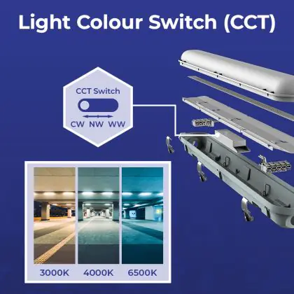 Description Lot 4x Réglette LED Étanche V3.0 10-18W 1300-2520lm - 830-865 CCT | 60cm - Câblage Traversant (5x2.5mm2)