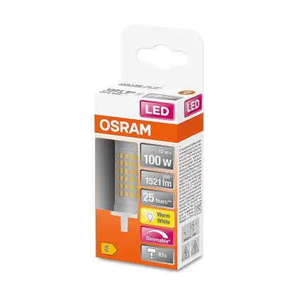 Lot 6x Osram LED Linéaire R7s Parathom 78mm Claire 12W 1521lm - 827 Blanc Très Chaud | Dimmable - Remplacement 100W est une ampoule tubulaire linéaire à double extrémité. Ce type d’ampoule permet de délivrer une lumière homogène à 360° avec comme température de couleur . Cette ampoule LED R7s de chez Osram est la solution idéale pour le remplacement de vos anciennes ampoules halogènes. Cette ampoule LED n’a pas besoin de transformateur, elle fonctionne avec 230V et peut se connecter directement sur le secteur électrique.