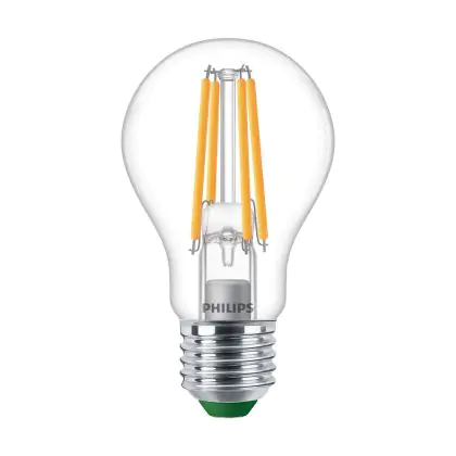 Cette ampoule Philips Master Ultra Efficient LED E27 Poire Filament Claire 4W 840lm - 827 Blanc Très Chaud | Dimmable - Remplacement 60W avec son efficacité lumineuse de lumen par watt vous permettra de profiter d’un éclairage de qualité. Avec sa durée de vie de 50000 heures, vous n’aurez pas à vous soucier de son remplacement avant quelques années.