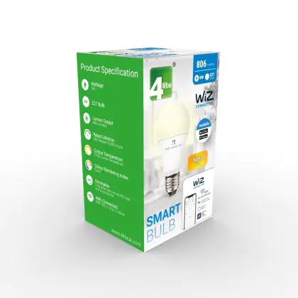 Cette ampoule WiZ Smart LED E27 Poire Dépolie 9W 806lm - 827 Blanc Très Chaud | Dimmable - Remplacement 60W avec son efficacité lumineuse de lumen par watt vous permettra de profiter d’un éclairage de qualité. Avec sa durée de vie de 15000 heures, vous n’aurez pas à vous soucier de son remplacement avant quelques années.